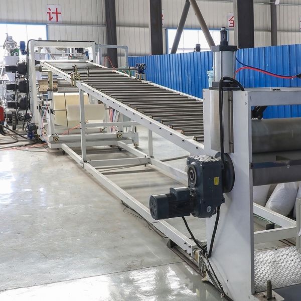 PP PE sheet extruding line consists of single screw extruder,clothes rack type mould,three-roller calendar ,cooling haul rack,sheet shearing machine and other auxiliary machines.It can be used to produce all kinds of soft and hard PP PE board,PP PE sheet and transparent PP PE sheet.It is widely used in the following fields:PP PE wood plastic sheet , PP PE crust foaming sheet and PP PE foaming construction plate,etc.